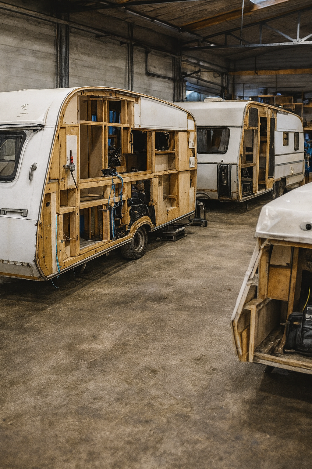 Vi er Nordjyllands største leverandør af brugte dele til campingvogne. Som professionel ophugger af campingvogne sørger vi for, at gode dele får nyt liv – og at du kan finde de reservedele, du mangler, til en fornuftig pris.